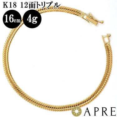 喜平 ブレスレット K18 トリプル12面 16cm 4g 造幣局検定刻印付き ゴールドキヘイ チェーン 12面トリプル 十二面 18金 750 K18YG 新品