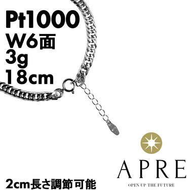 純プラチナ 喜平 ブレスレットPt999 ダブル6面 16~18cm 3g 造幣局検定刻印付き キヘイ チェーン 6面ダブル 六面 16cm 17cm 18cm 新品