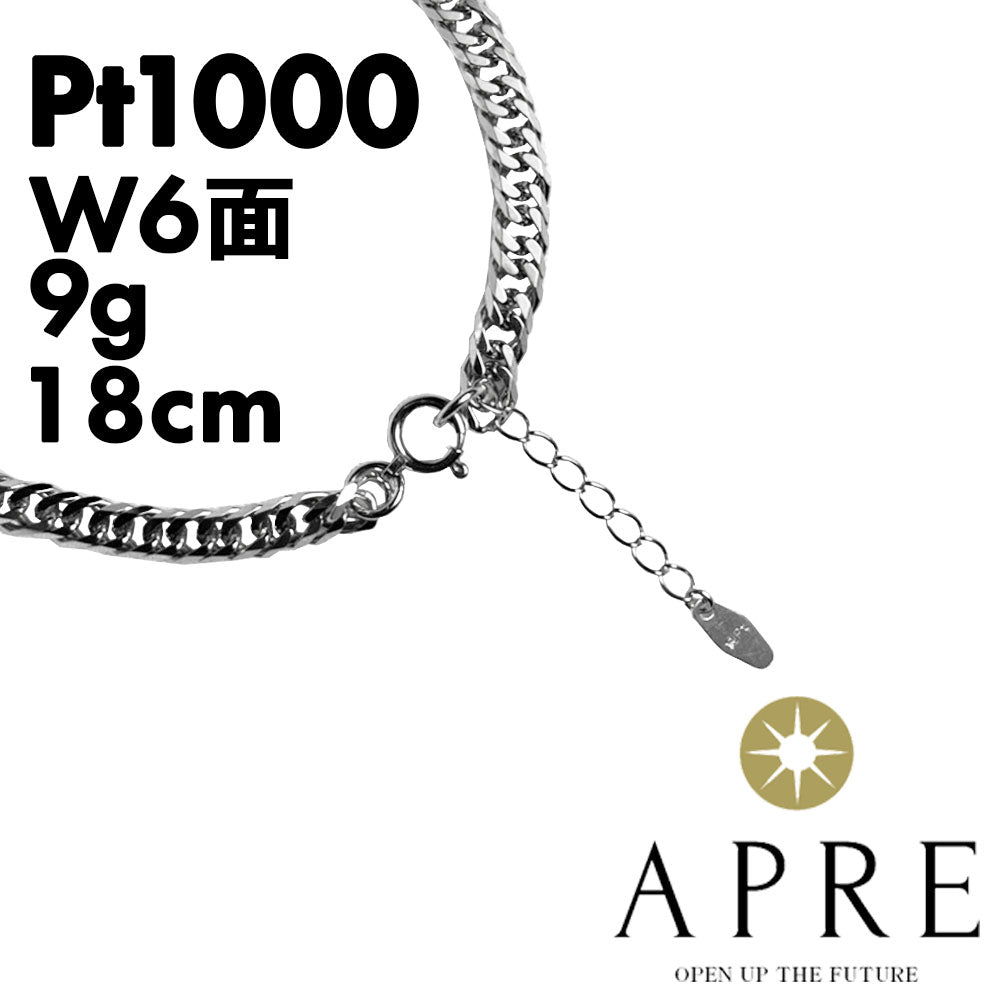 純プラチナ 喜平 ブレスレットPt999 ダブル6面 16~18cm 9g 造幣局検定刻印付き キヘイ チェーン 6面ダブル 六面 16cm 17cm 18cm 新品