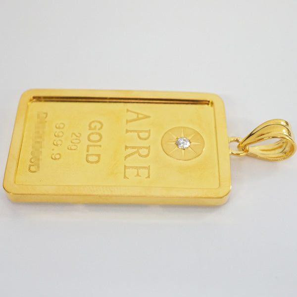 商品名 : 【新品N/新品】 24金 純金 ダイヤ付 インゴット 20g ゴールドバー インゴット:K24(純金)、枠:シルバー(金メッキ) ペンダントトップ 20231017ingot-20g-top-d