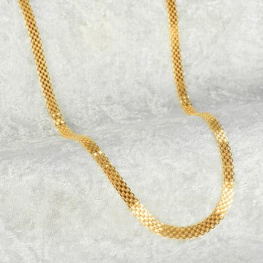 繊細に組み上げられたチェーンが整ったリズムを描き、まばゆい輝きを放つ「K18 ビスマルクチェーンネックレス」。