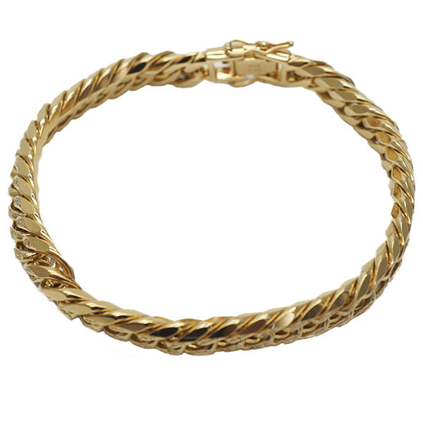 【中古AB】 喜平 ブレスレット ダイヤ付き W6面 19cm 50g キヘイ 18金 750 造幣局検印あり ダブル6面 男女兼用 1.10ct刻印あり K18YG ユニセックス ブレスレット 20445861