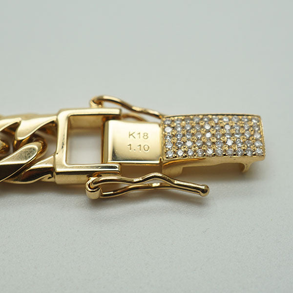 商品名 : 【中古AB/使用感小】 喜平 ブレスレット ダイヤ付き W6面 19cm 50g キヘイ 18金 750 造幣局検印あり ダブル6面 男女兼用 1.10ct刻印あり K18YG ユニセックス ブレスレット 2024072620445861