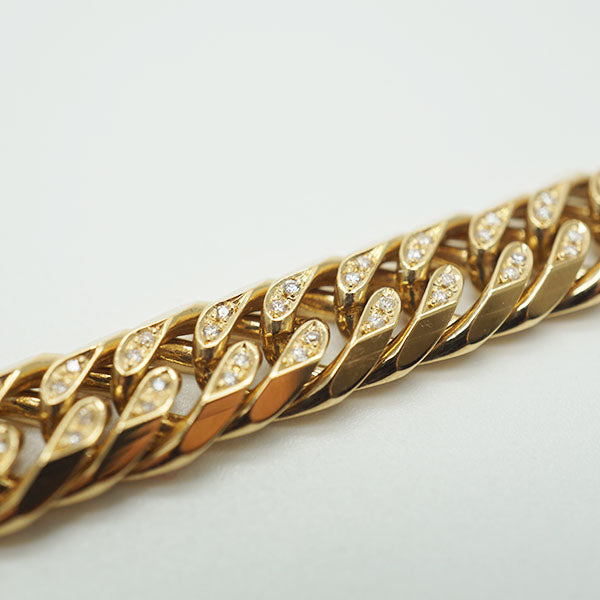 シリーズ : 喜平 ブレスレット ダイヤ付き W6面 19cm 50g キヘイ 18金 750 造幣局検印あり ダブル6面 男女兼用 1.10ct刻印あり