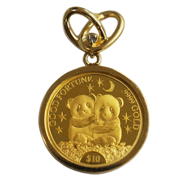 備考:愛らしい双子のパンダの赤ちゃん “シャオシャオ” と “レイレイ” の誕生を祝して制作された、特別仕様の純金製コインペンダントトップです。