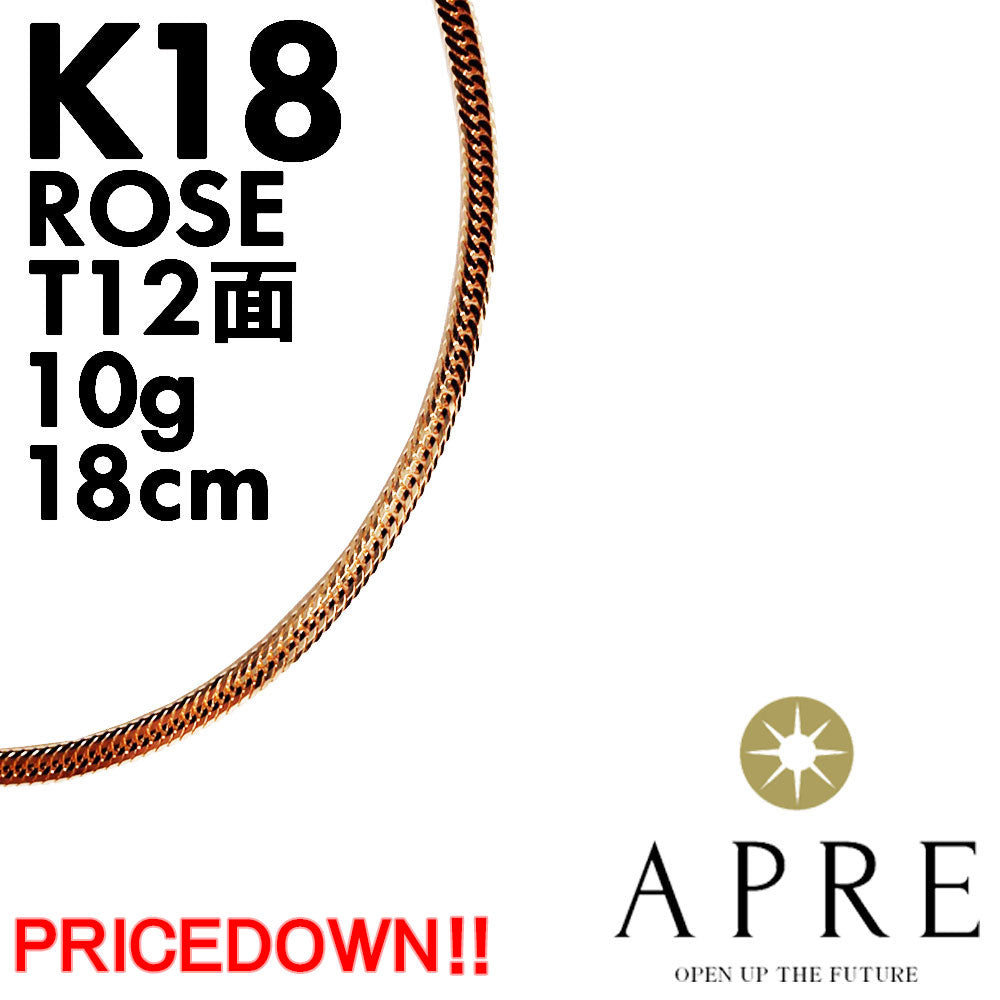 喜平 ブレスレット ローズゴールド K18 トリプル12面 18cm 10g (11g以上確定) 造幣局検定刻印付き キヘイ チェーン 12面トリプル 十二面 750 K18PG 新品