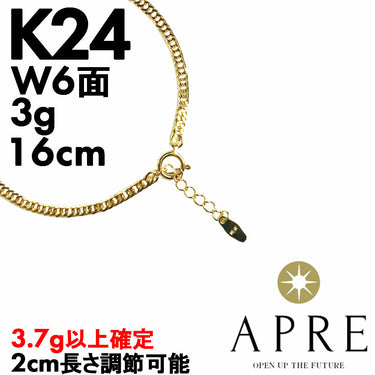 シリーズ : 純金 喜平 ブレスレット 24金 W6面 16~18cm アジャスター付 3g キヘイ ダブル6面 6面ダブル 造幣局検定マーク 16cm 17cm 18cm