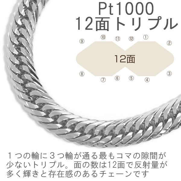 Pure Platinum Kihei Necklace Pt1000 Triple 12-sided 50cm 50g (confirmed over 51g) Mint certification stamp Platinum Kihei Chain 12-sided triple 12-sided Pt999 New Immediate delivery