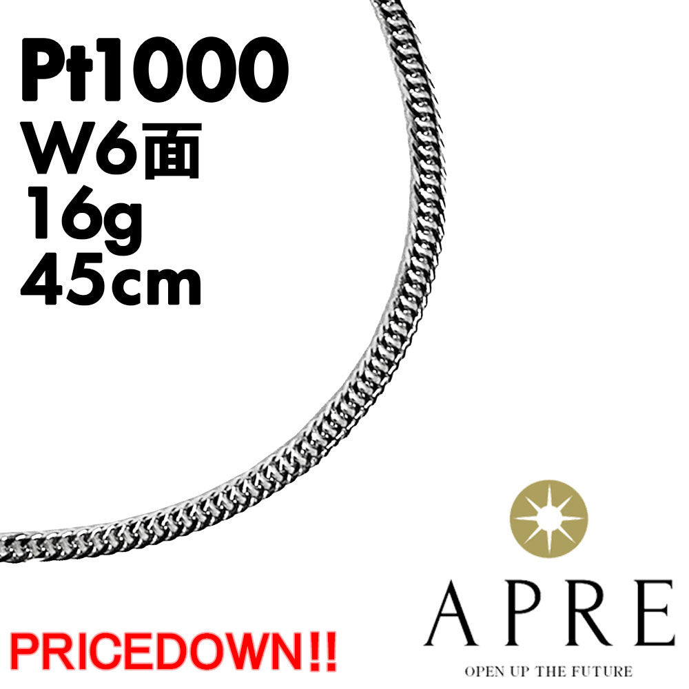 Pure Platinum Kihei Necklace Pt1000 W6 Sides 45cm 16g Mint Certification Mark Kihei Chain Double 6 Sides 6 Sides Double 6 Sides New