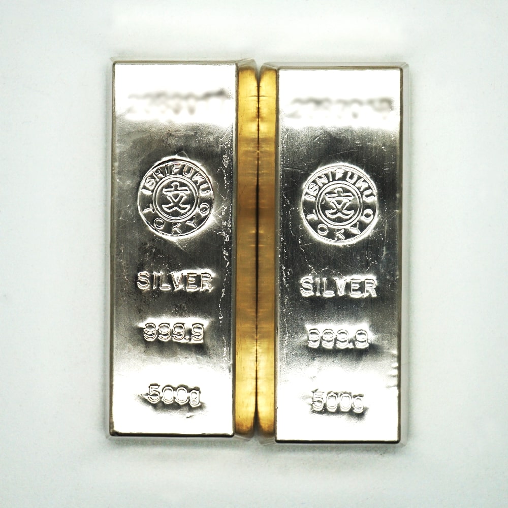 商品名 : 【中古AB/使用感小】 純銀 インゴット 500g 2点 1kg 1000g 石福金属 銀地金 品位999.9 シルバー 1キロ インゴット シルバー 2025102420470076