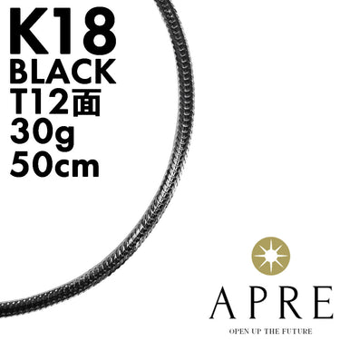 【新品N/新品】 K18 ブラック 喜平 ネックレス T12面 50cm 30g キヘイ 12面トリプル トリプル12面 十二面 18金 750 造幣局検印あり K18YG ルテニウムメッキ ネックレス K18-t12-50cm-30g-bk
